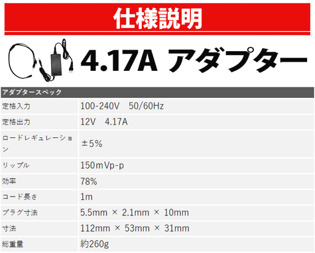 【セットオプション】電源4分配ケーブル+アダプター大(4.17A)