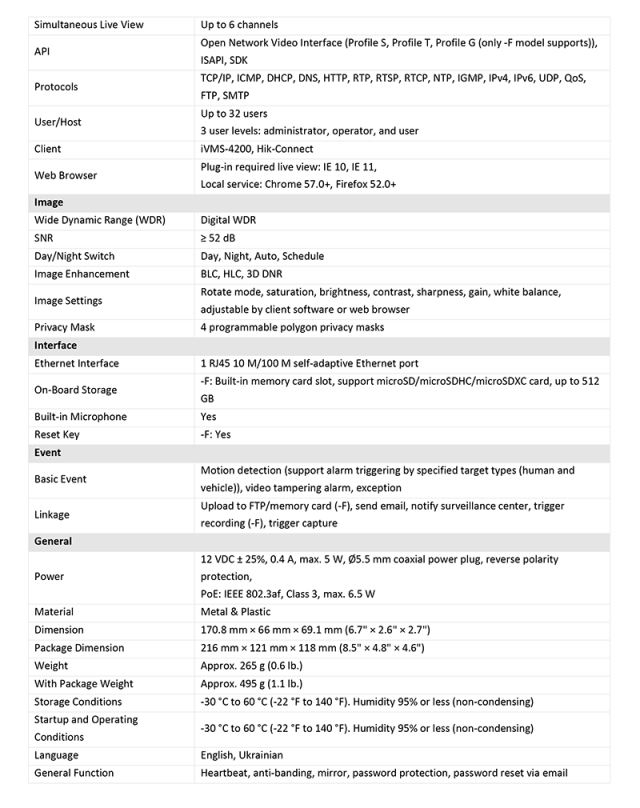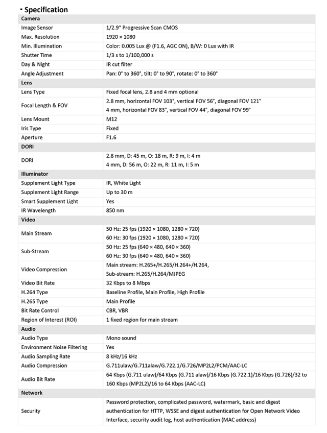 DS-2CD1023G2-LIU 仕様表