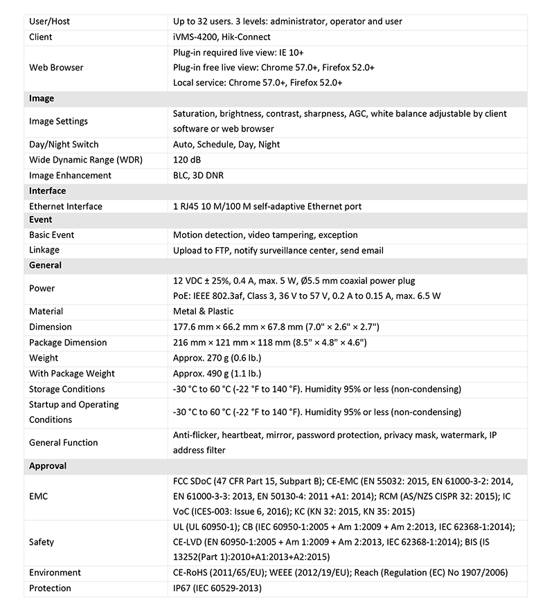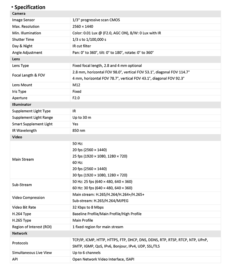 DS-2CD1043G0-I 仕様表