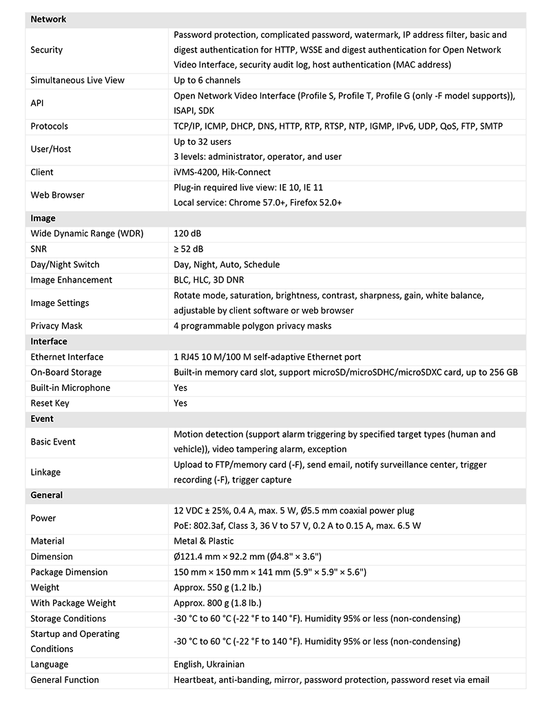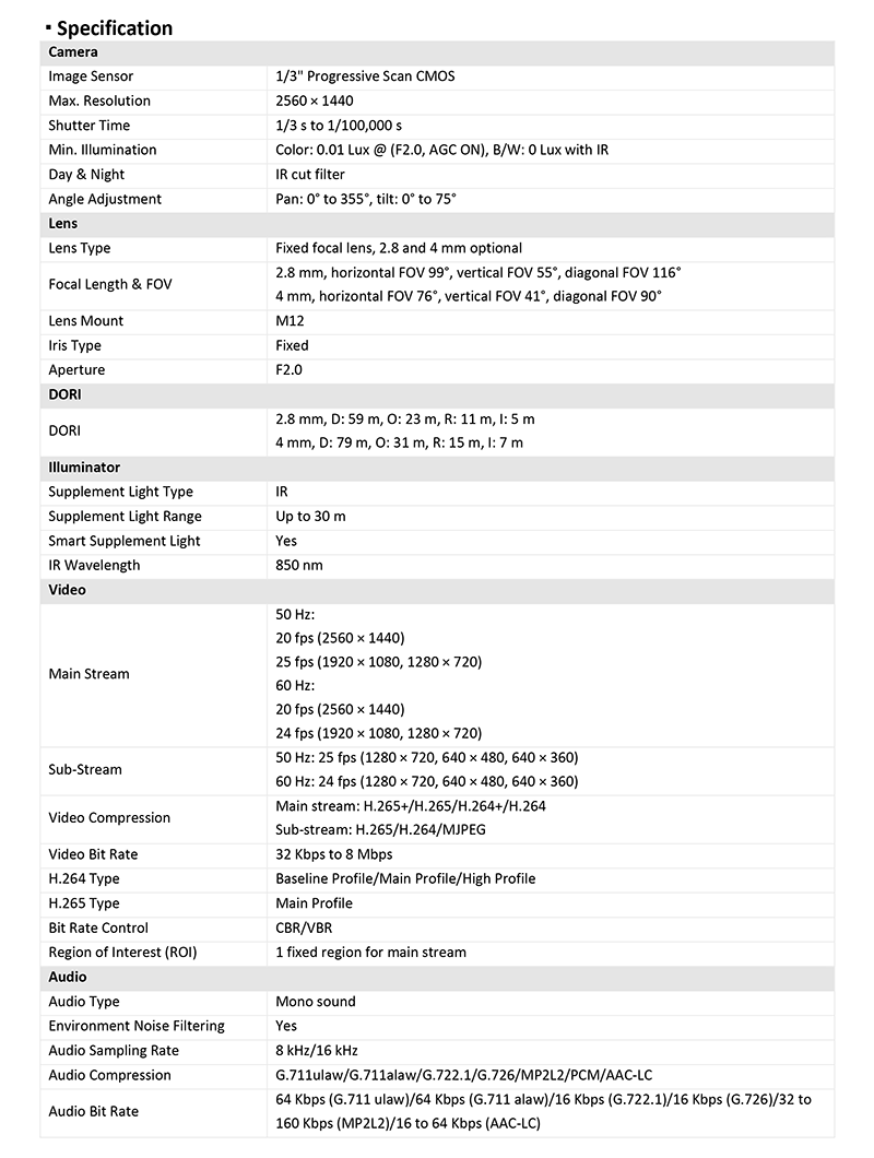DS-2CD1143G2-IUF 仕様表