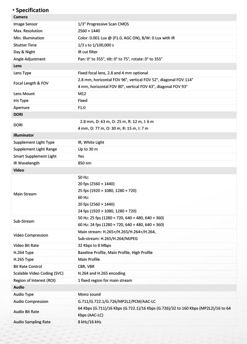 DS-2CD1147G2H-LIU 仕様表