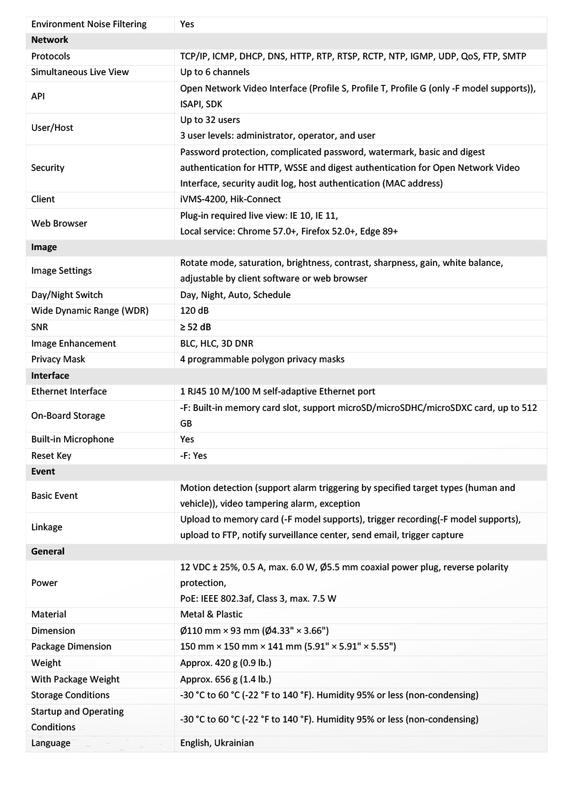 DS-2CD1347G2H-LIU 仕様表