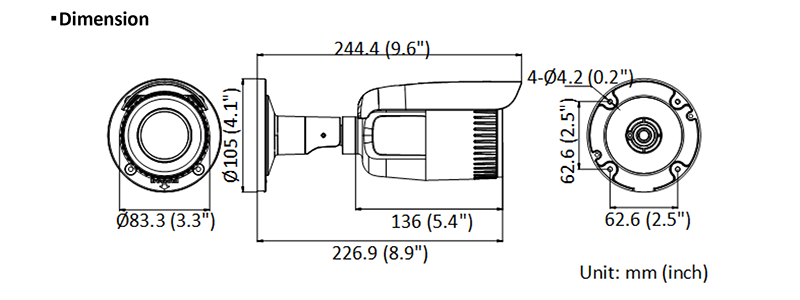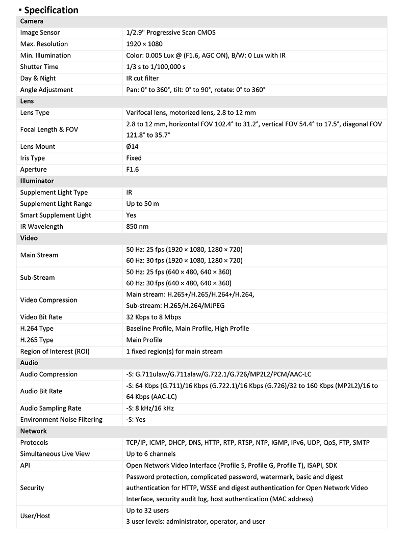 - 2.8~12mmのモーター駆動バリフォーカルレンズにより、簡単な設置と柔軟な監視が可能