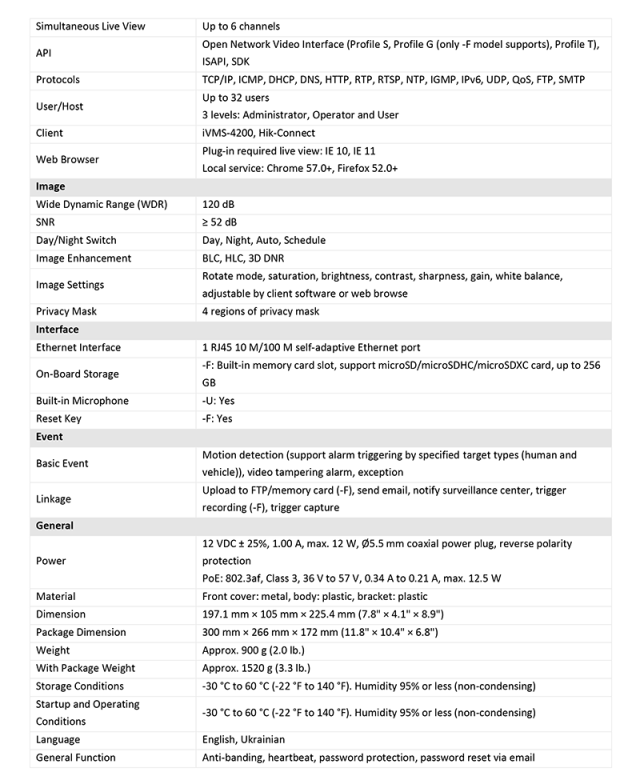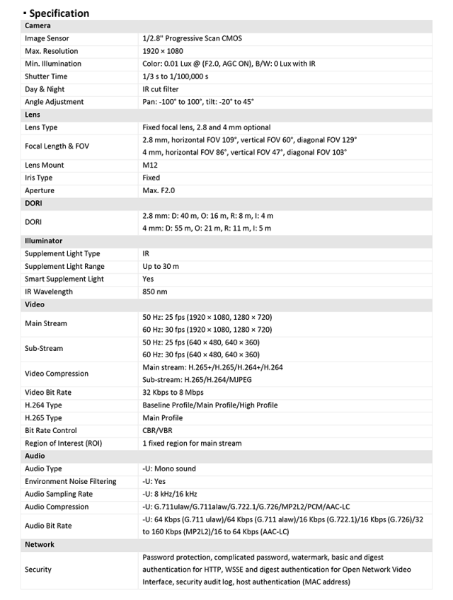 DS-2CD1P23G2-IUF 仕様表