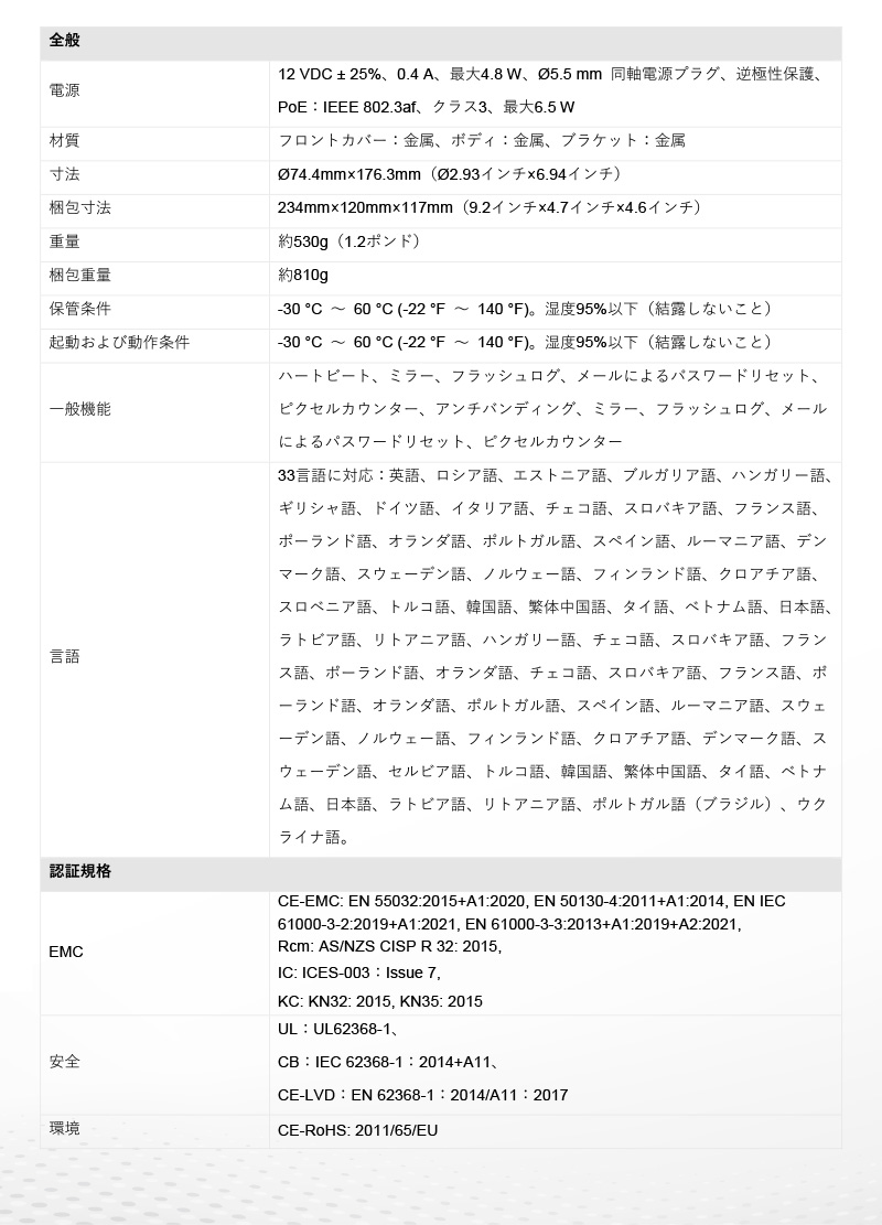 - 内蔵の双方向オーディオによるリアルタイム・セキュリティの提供