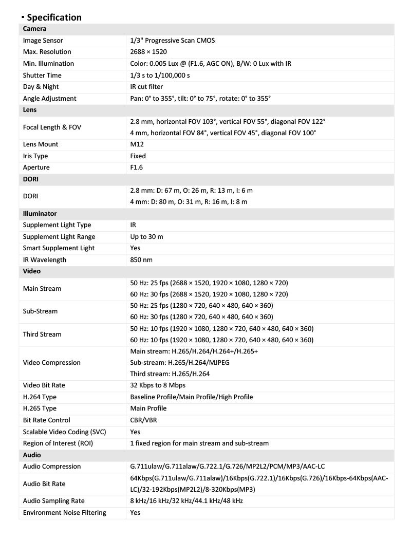 DS-2CD2143G2-IU 仕様表
