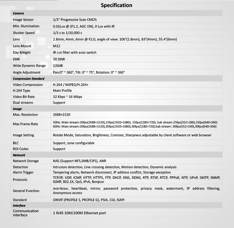 DS-2CD2342WD-I 仕様表