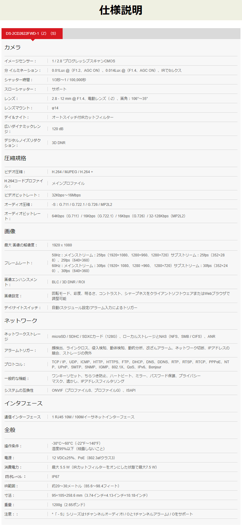 ※弊社サイトを盗用した詐欺サイトにご注意ください。 TOP 商品一覧 カメラ単品バレット型 IPシステム屋外用防犯カメラ 高機能カメラシステムPoC/PoE 機能で選ぶカメラ電源不要 ワンケーブル PoE対応 機能で選ぶSDカード録画 カメラ単体で録画する 機能で選ぶバリフォーカル 焦点距離変更可能 防犯カメラ IP CAMERA 屋外用 ネットワークカメラ DS-2CD2622FWD-IZS 価格: ¥53,900 (税込) 販売期間: 型番: DS-2CD2622FWD-IZS 数量: 個 在庫 1個 返品についての詳細はこちら レビューはありません 商品仕様 型番: DS-2CD2622FWD-IZS 防犯カメラ IP CAMERA 屋外用 ネットワークカメラ DS-2CD2622FWD-IZS 価格: ¥53,900 (税込) 販売期間: 型番: DS-2CD2622FWD-IZS 数量: 個 在庫 1個 返品についての詳細はこちら レビューはありません