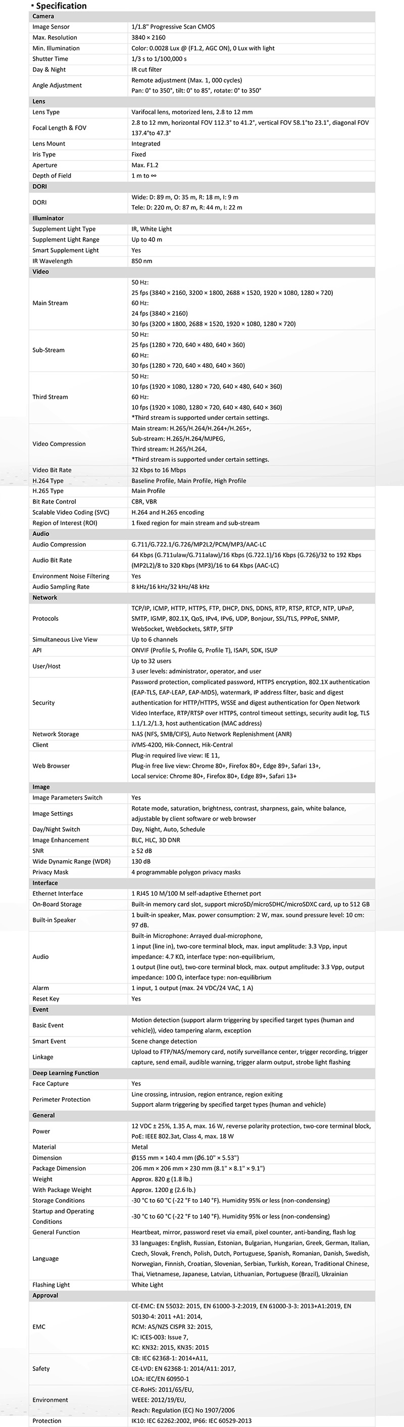 DS-2CD2787G2H-LIPTRZS2U/SL 仕様表