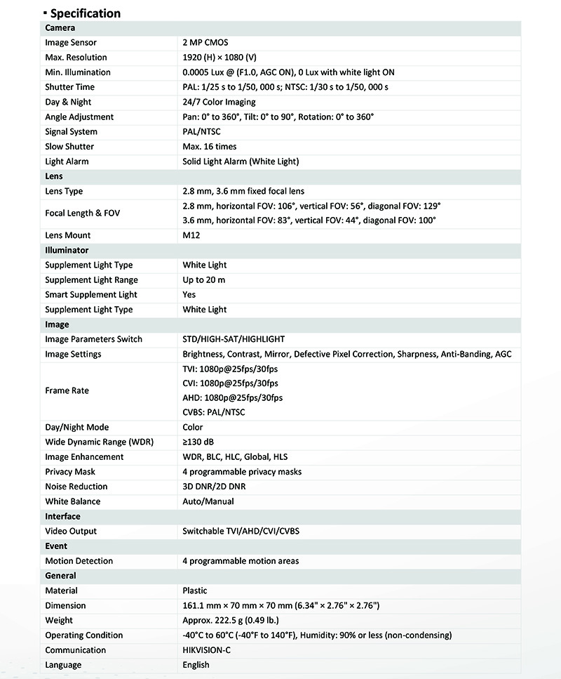 - 明るい夜間撮影のための最大20メートルの白色光距離