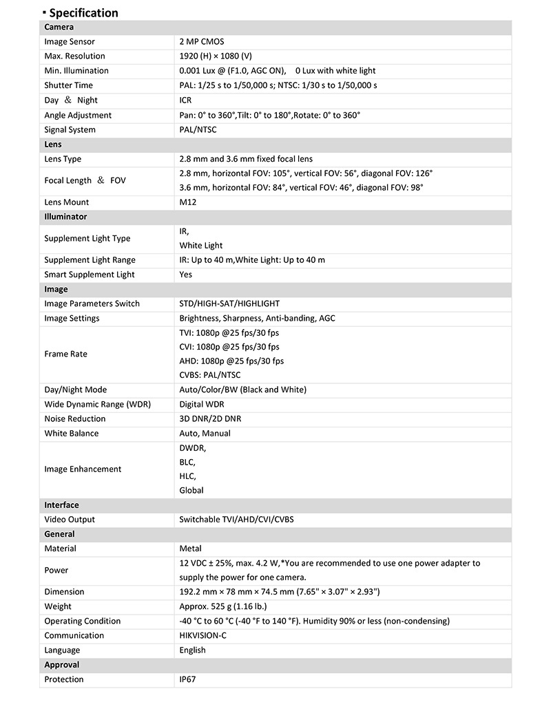 DS-2CE12DF0T-LF 仕様表