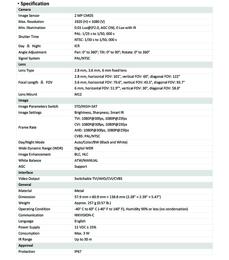 - 4 in 1(4つの信号、TVI/AHD/CVI/CVBS切り替え可能)