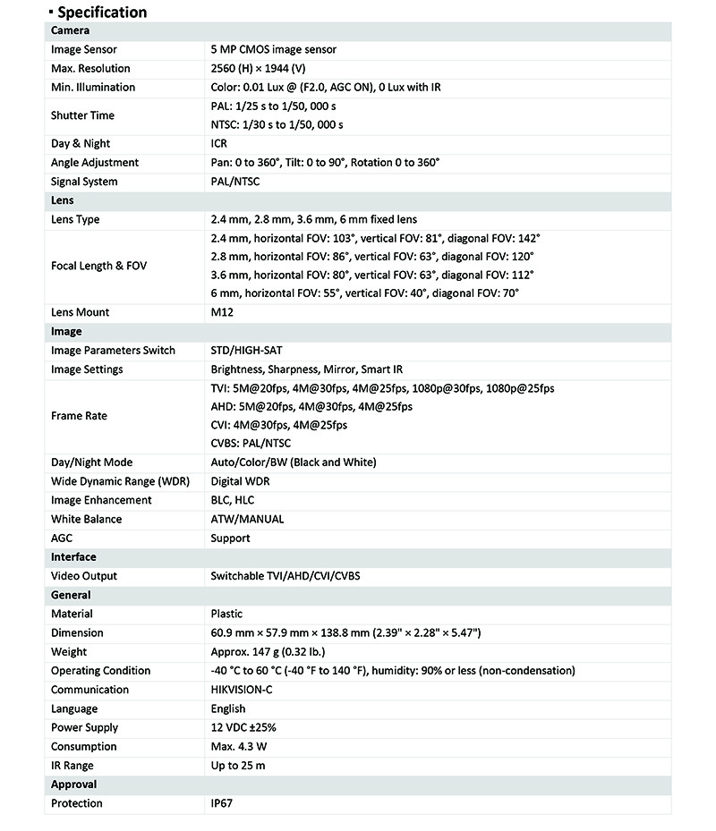 DS-2CE16H0T-ITPF 仕様表