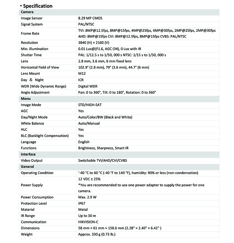 DS-2CE16U0T-ITF 仕様表