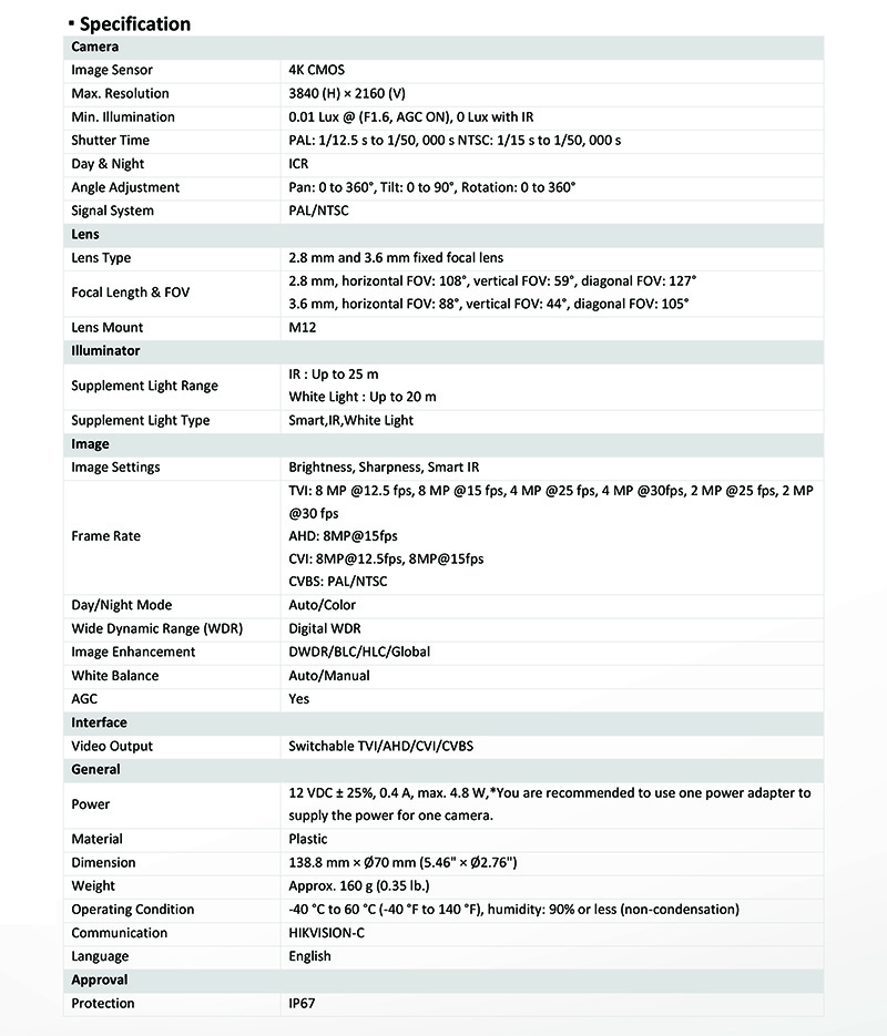 【提携倉庫より発送】[HIKVISION] [ハイブリッド-8M] 4K UHD/DS-2CE16U0T-LPF/TVI,AHD,CVI/動き検知ライティング/逆光,露出,ハイライト補正/20M IR/防水
