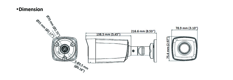 • 明るい夜間撮影のための最大30メートルの赤外線距離