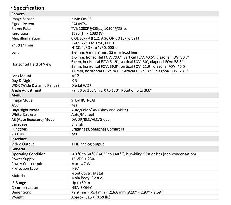 - 明るい夜間撮影のための最大80メートルの赤外線距離