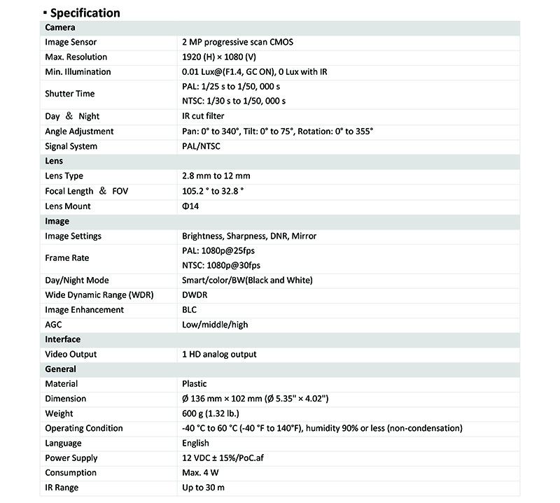 DS-2CE56D0T-VFIRE 仕様表