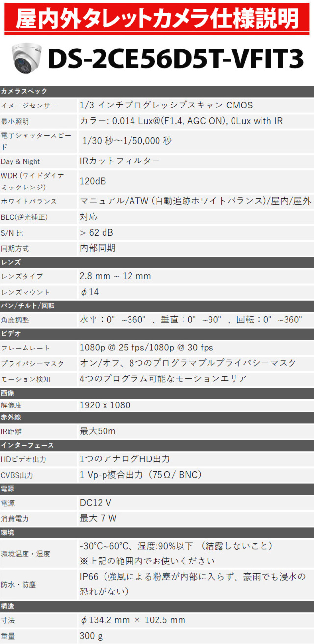 | 型番: | DS-2CE56D5T-VFIT3 |