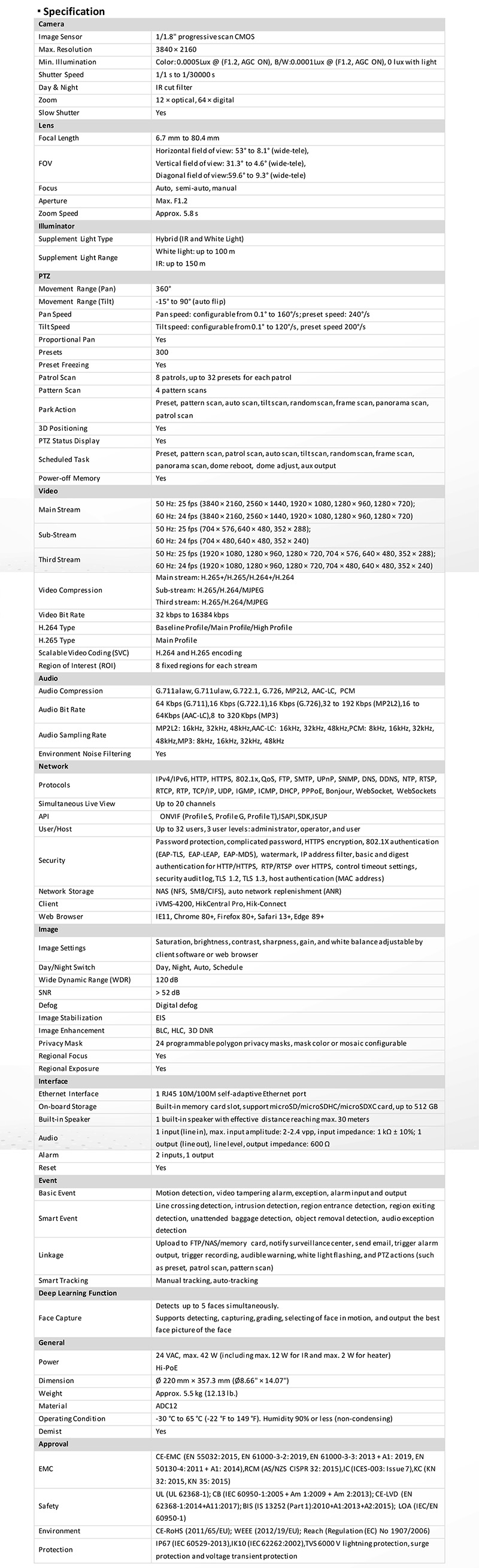 DS-2DE7A812MCG-EB 仕様表