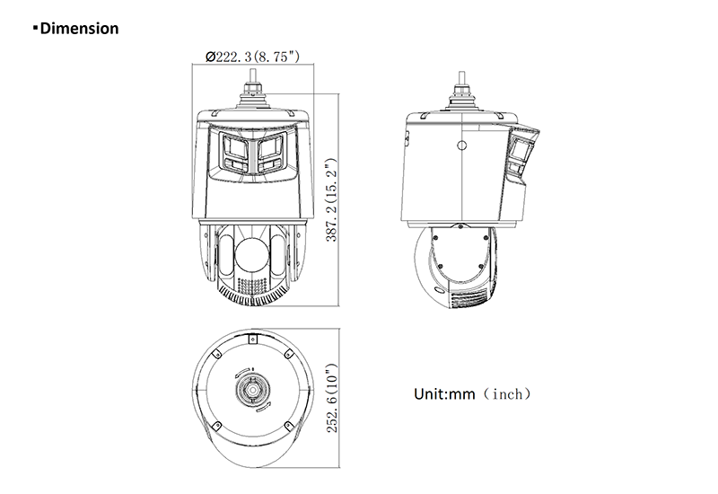 - 25倍光学ズームおよび16倍デジタルズームにより広範囲の詳細な監視が可能