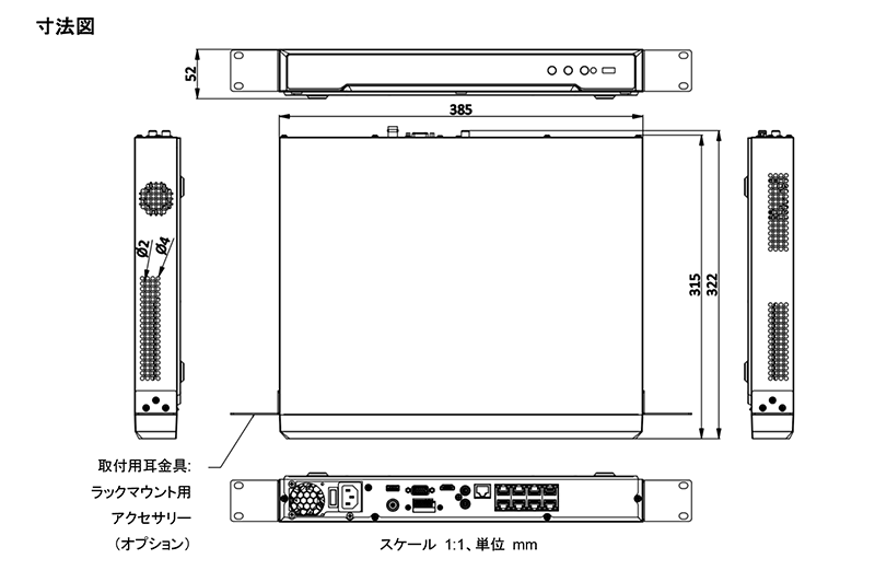 - 自己適応型10/100/1000 Mbpsイーサネット端子×1搭載