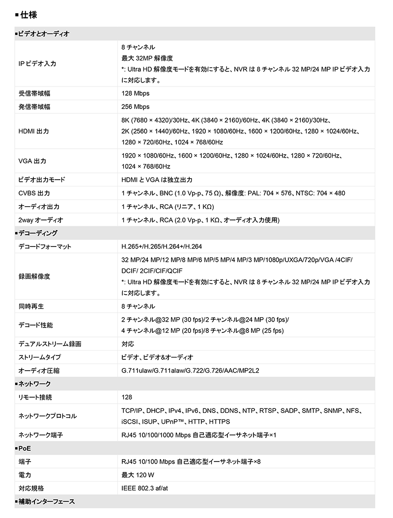 DS-7608NI-M2/8P 仕様表