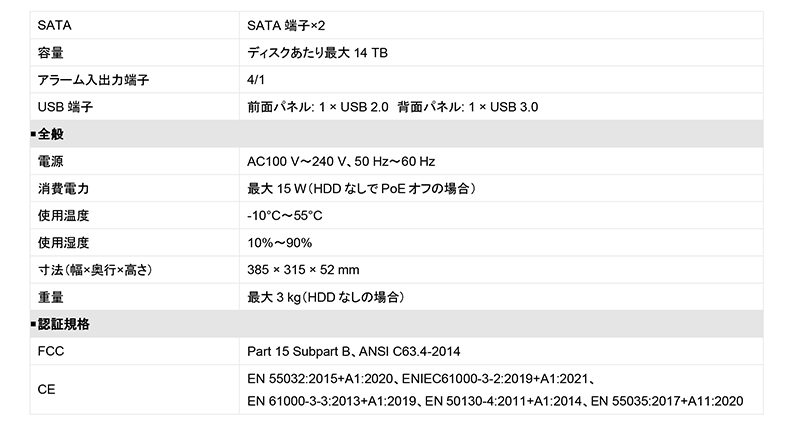 - H.265+ビデオ圧縮により、効率的にデータの保管スペースを最大75%削減