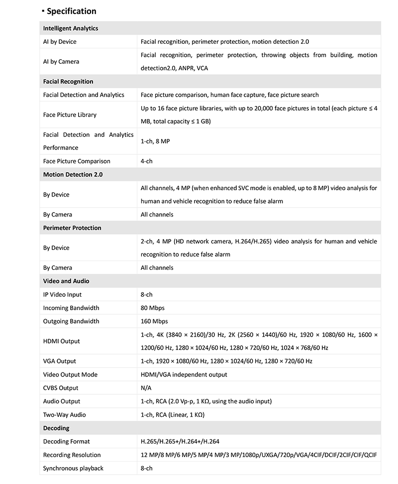 DS-7608NXI-K2 仕様表