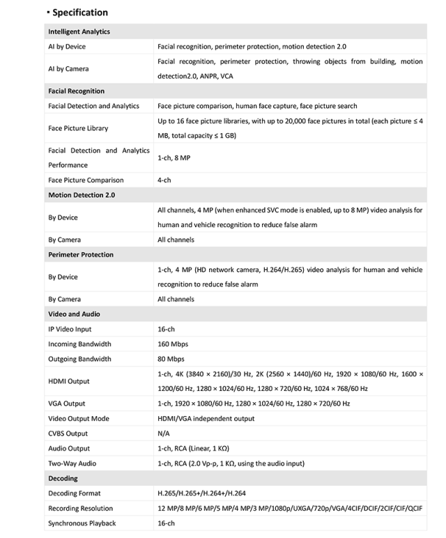 DS-7616NXI-K1 仕様表