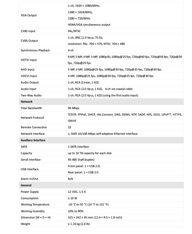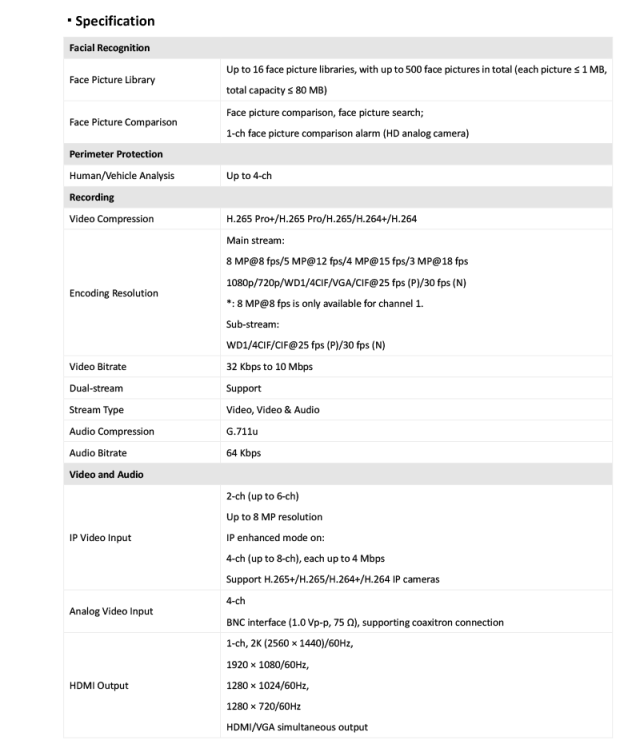 iDS-7204HUHI-M1/FA 仕様表
