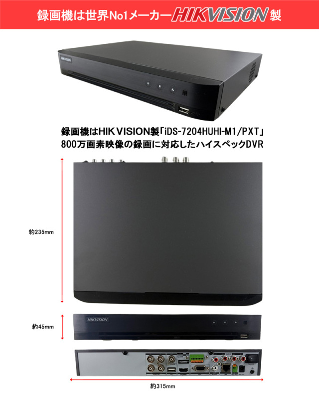 | 製品名: | 4K HIKVISION AI機能付き アナログハイビジョン PoC カメラ電源不要 スマホ監視 4ch 800万画素 iDS-7204HUHI-M1/PXT |