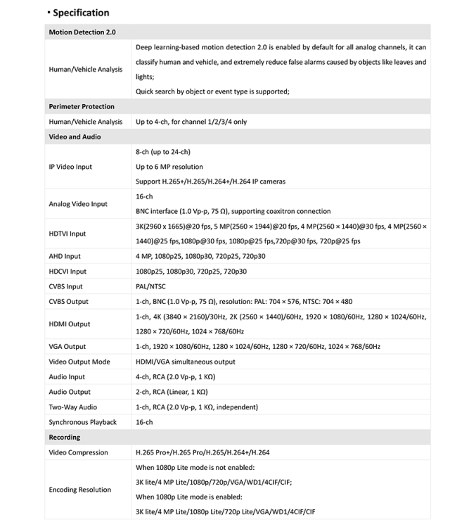 - 最大4MP Lite解像度での全チャンネル録画に対応