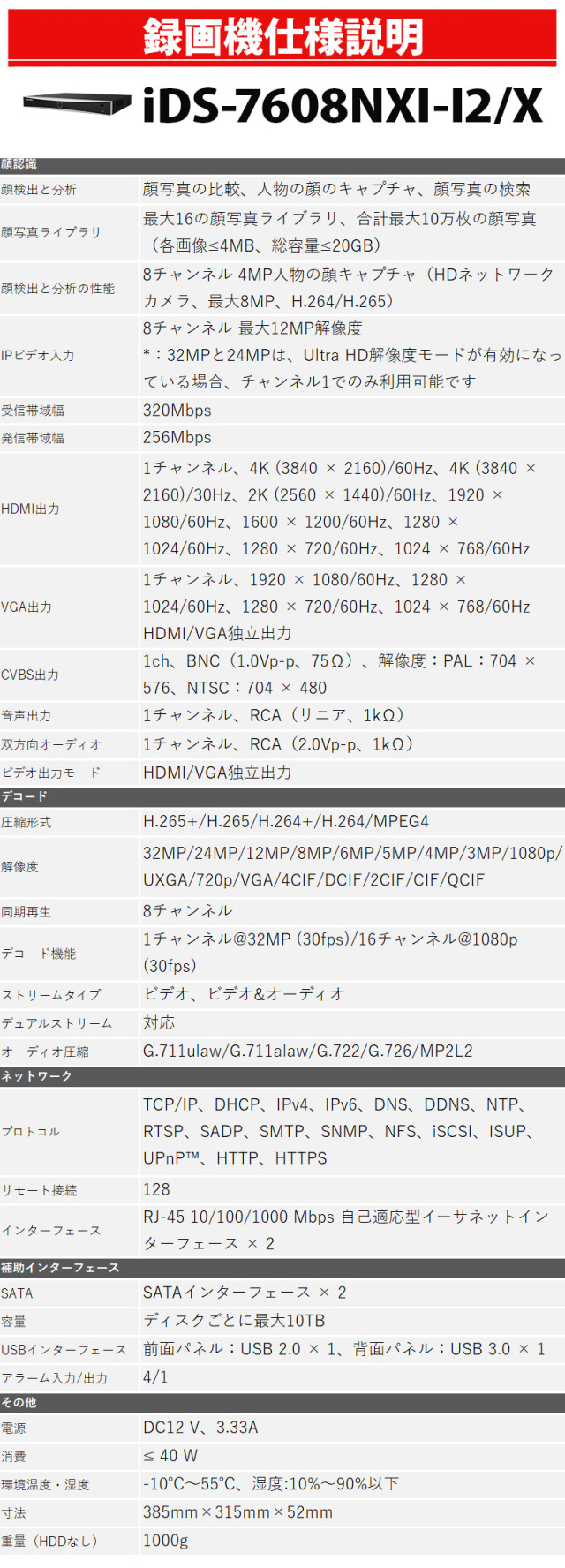 HIKVISION社製のHD-TVIカメラ8CHデジタルビデオ録画機