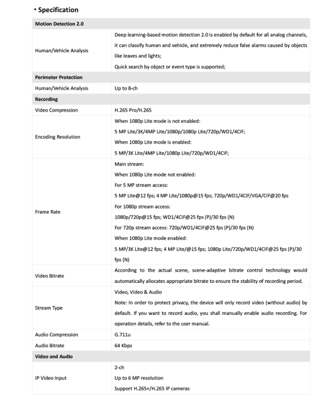 - 最大3K/5MP Lite解像度でのフルチャンネル録画
