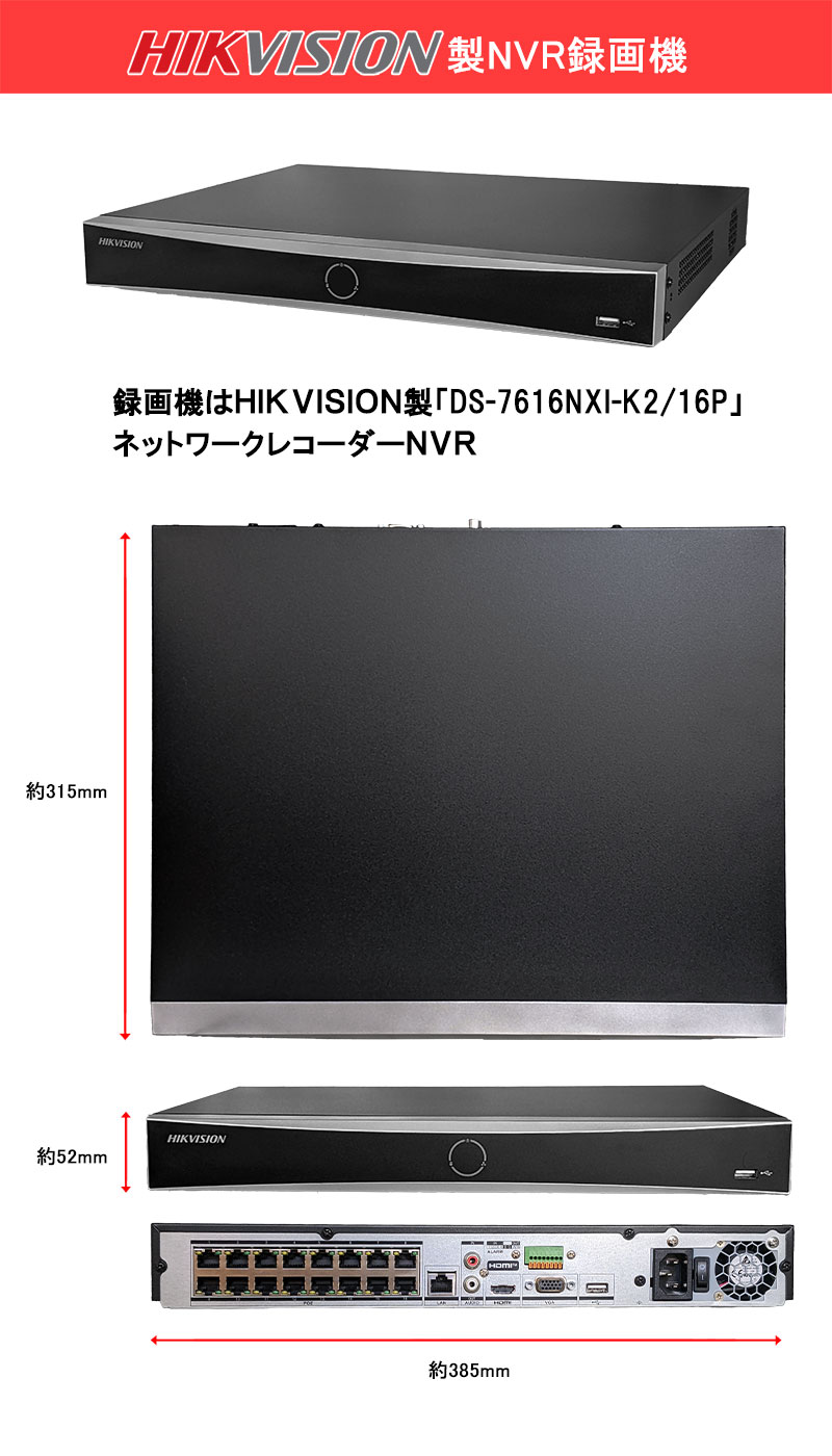 | 製品名: | 【防犯カメラセット】16台|HIKVISION(ハイクビジョン)|高画質|PoE対応NVR 録画機 16ch|屋外・屋内対応|マイク内蔵 HDD別|防水設計 |