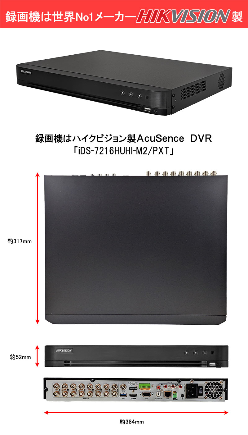 | 製品名: | 【防犯カメラセット】16台|HIKVISION(ハイクビジョン)|高画質|PoC対応|同軸ケーブル接続|屋外・屋内対応|HDD別 |